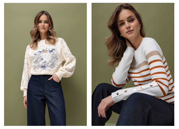 Najmodniejsze są swetry oversize, modele z wyraźnymi akcentami, bawełniane klasyki oraz miękkie modele z domieszką alpaki i moheru, które zapewnią komfort termiczny w chłodniejsze dni.