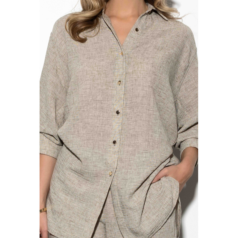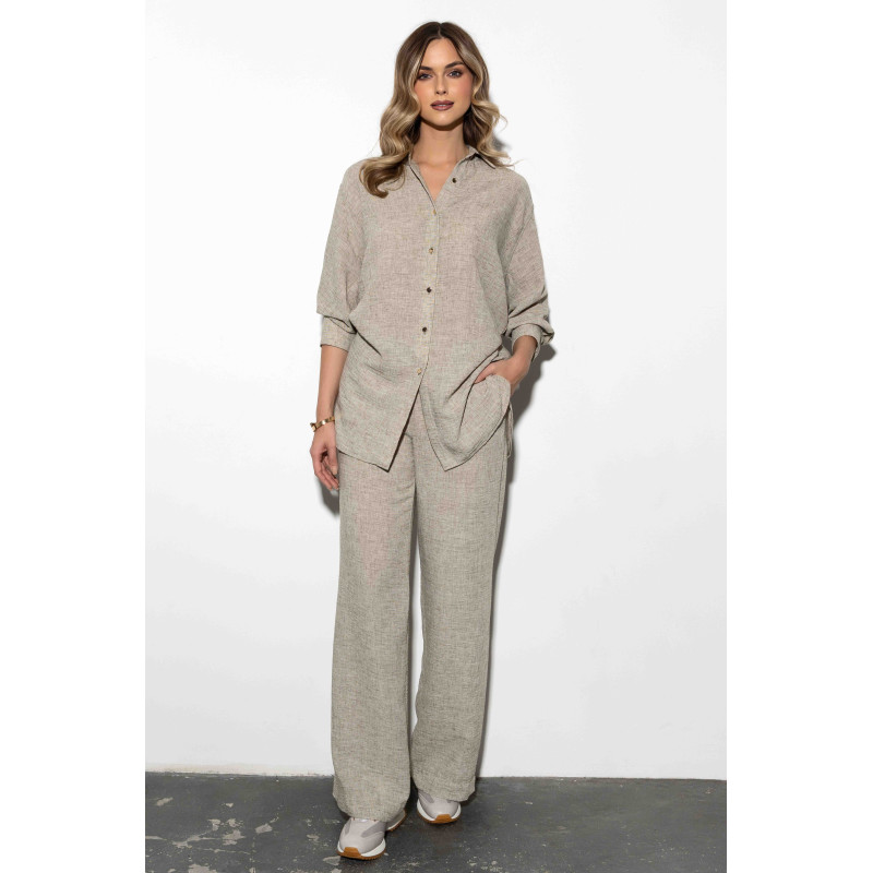 W połączeniu ze spodniami PICASSO z tego samego materiału, koszula tworzy stylowy i casualowy zestaw, który doskonale sprawdzi się w codziennych, miejskich stylizacjach. Można ją zestawić również z jeansami, spódnicami lub szortami, tworząc uniwersalne, kobiece i wygodne outfity.