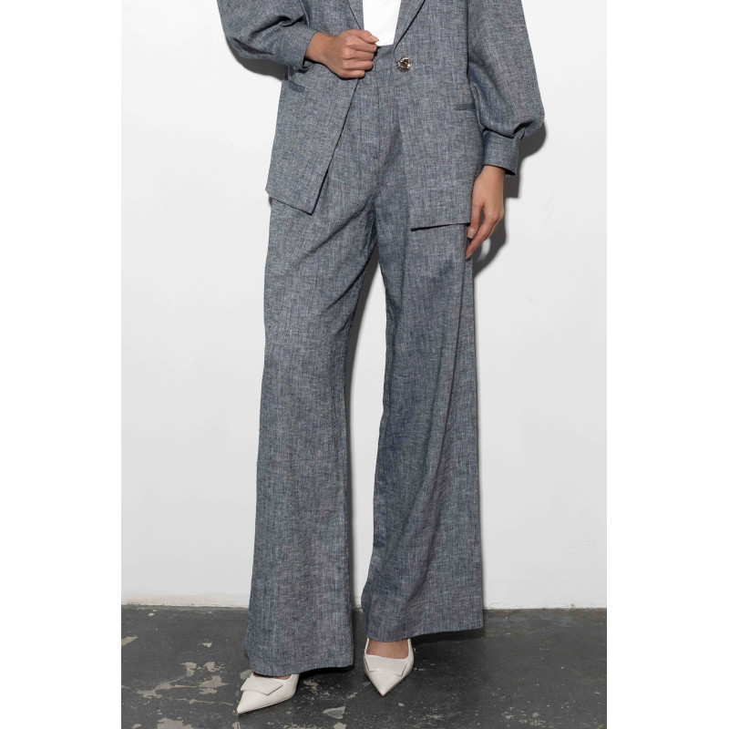 Spodnie mają luźny fason z szerokimi nogawkami, który pięknie wysmukla nogi i nadaje stylizacji lekkości. Wysoki stan podkreśla talię i optycznie wydłuża nogi, tworząc harmonijny, kobiecy efekt.