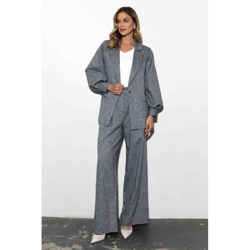 W duecie z marynarką JAZZ, uszytą z tej samej tkaniny, spodnie tworzą stylowy garnitur damski, idealny na spotkania, do pracy czy na wyjątkowe okazje.
