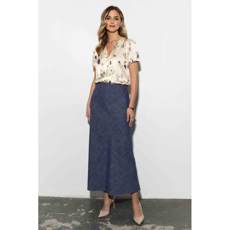 Spódnica została wykonana z wysokiej jakości tkaniny z dodatkiem wiskozy oraz lnu, dzięki czemu jest przewiewna, przyjemna dla skóry i świetnie sprawdza się w cieplejsze dni. Naturalne włókna zapewniają doskonałą cyrkulację powietrza i komfort noszenia, a jednocześnie nadają tkaninie subtelną strukturę i delikatny, szlachetny wygląd.