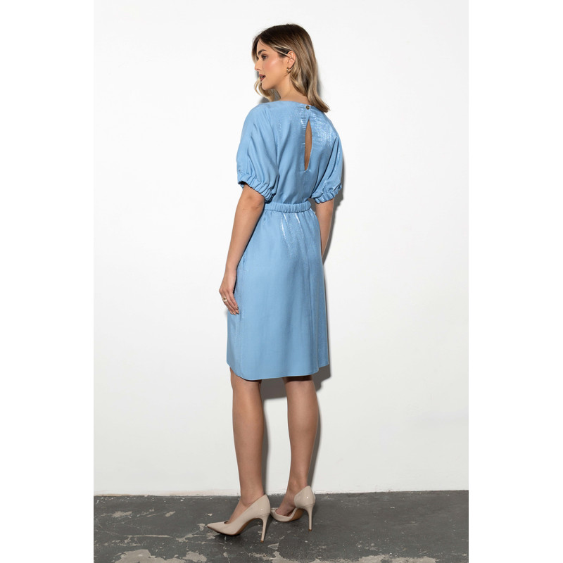 Dodaj elegancji i kobiecego wdzięku swojej garderobie dzięki naszej eleganckiej sukience damskiej TRUDI, dostępnej w modnym odcieniu niebieskiego. To model, który łączy w sobie elegancję, lekkość oraz subtelny połysk, sprawiając, że idealnie sprawdzi się na spotkania czy uroczyste okazje.