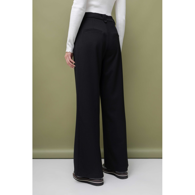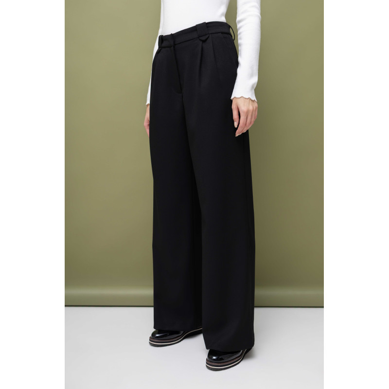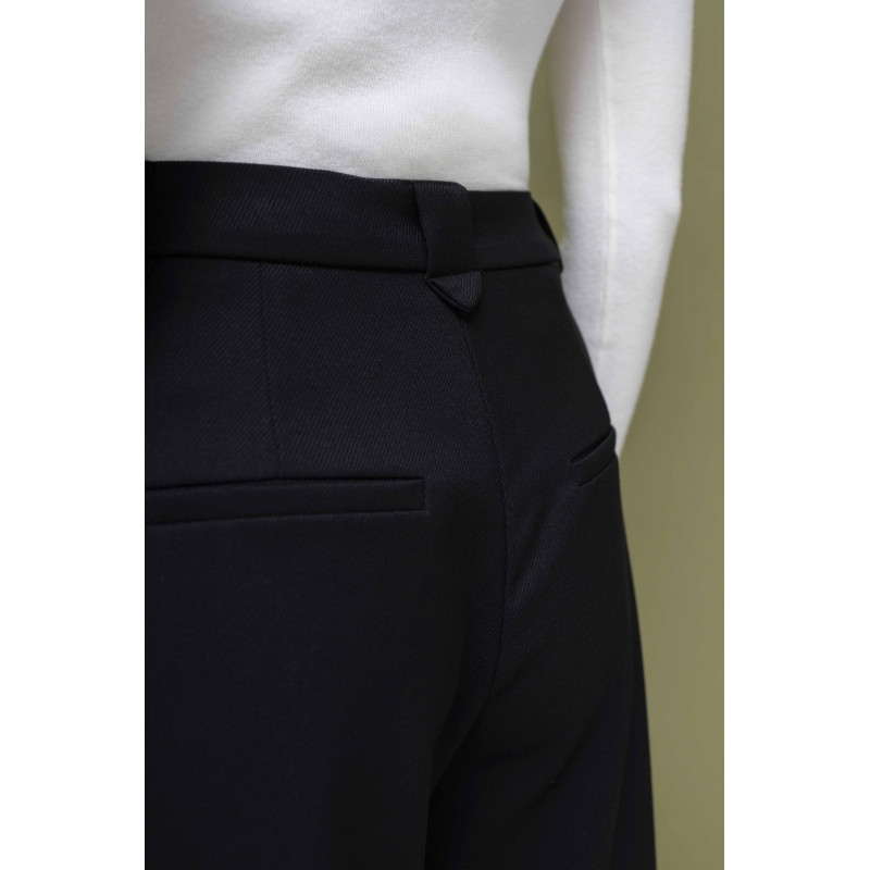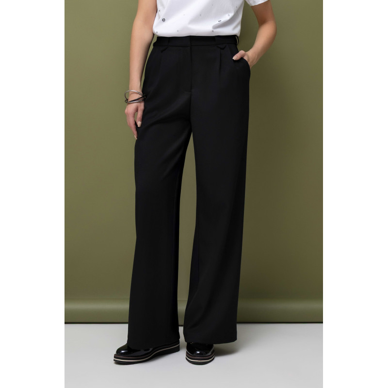 Spodnie damskie to model z szeroką nogawką, który doskonale komponuje się z luźnym fasonem kurtki. Są zapinane na zamek, guzik oraz haftkę, co zapewnia pewność i wygodę noszenia. Dodatkowo, spodnie posiadają praktyczne kieszenie, dzięki którym cały komplet staje się jeszcze bardziej funkcjonalny.
