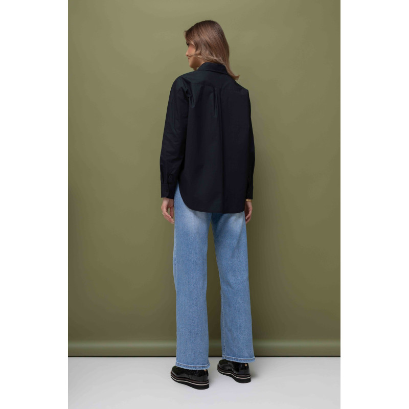 Bawełniana koszula damska w kolorze czarnym doskonale komponuje się z eleganckimi spodniami, spódnicą czy jeansami. To uniwersalna propozycja, która pozwala tworzyć stylizacje na różne okazje – od biurowych, przez casualowe, aż po bardziej formalne zestawy.