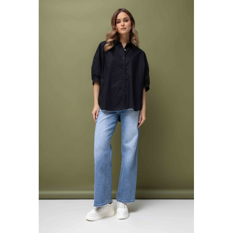 Czarna koszula damska to idealna propozycja dla kobiet ceniących wygodę i nowoczesny styl. Model został wykonany w 100% z oddychającej, naturalnej bawełnianej tkaniny, która zapewnia komfort noszenia nawet w cieplejsze dni. Miękki i przewiewny materiał doskonale sprawdzi się w codziennych stylizacjach, gwarantując uczucie lekkości przez cały dzień.