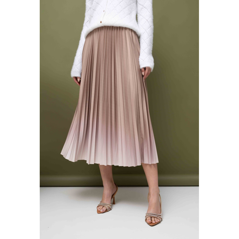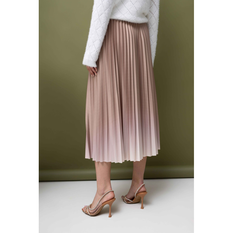 • Elegancka, plisowana spódnica damska z kolorze pudrowego beżu z efektem cieniowania