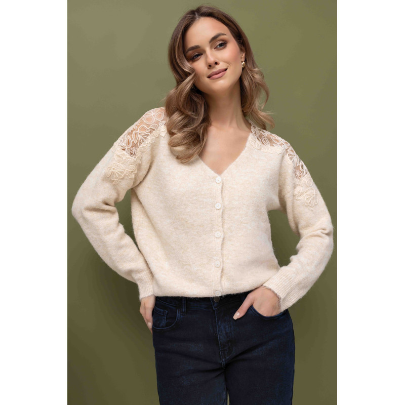 Sweter posiada luźniejszy fason, który zapewnia swobodę ruchów i nadaje stylizacji niezobowiązującego, modnego charakteru. Jest to doskonały wybór zarówno do codziennych, jak i bardziej eleganckich zestawów. Sweter zapinany z przodu na guziki pozwala nosić go na różne sposoby – jako klasyczny sweter lub rozpięty kardigan.