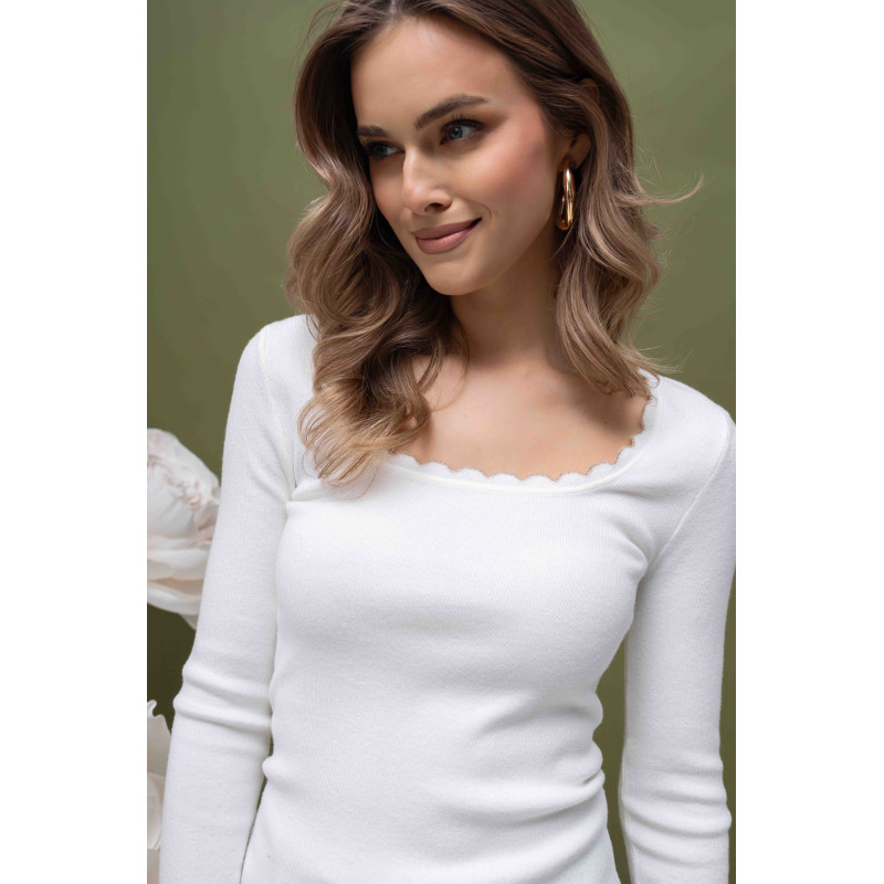 Model charakteryzuje się prostym, dopasowanym fasonem, który subtelnie podkreśla sylwetkę, nie krępując ruchów. To doskonała baza do wielu stylizacji – zarówno casualowych, jak i bardziej eleganckich. Dekolt karo nadaje całości nowoczesnego charakteru i delikatnie eksponuje szyję.